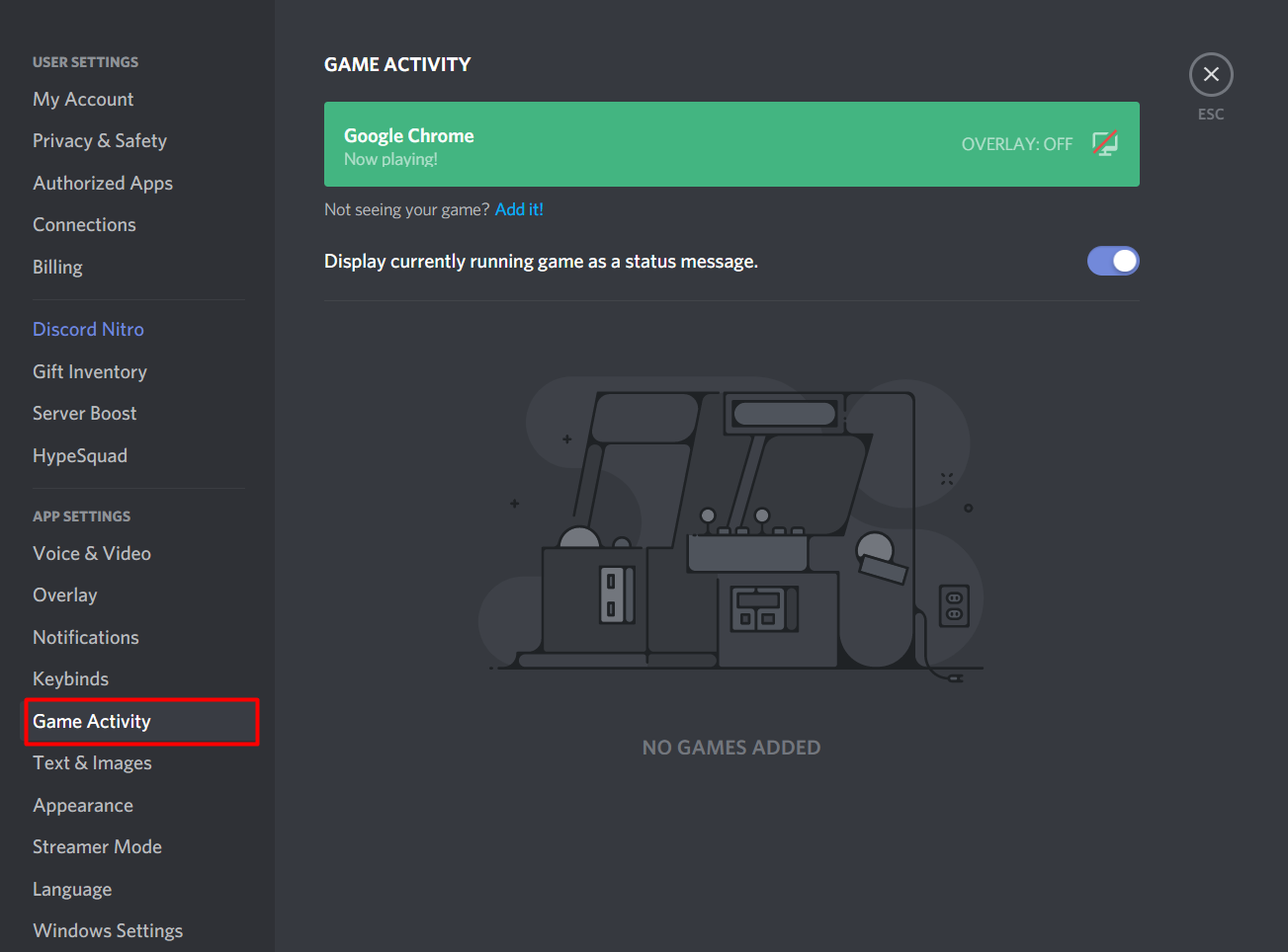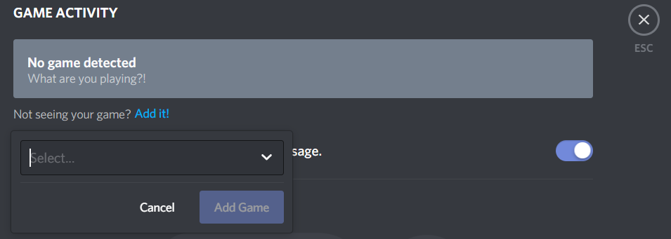 When you’re screen sharing between different applications and games, the application can sometimes confuse and detect the incorrect settings. To remedy this, Discord has a special feature where you can add your activity to Discord.