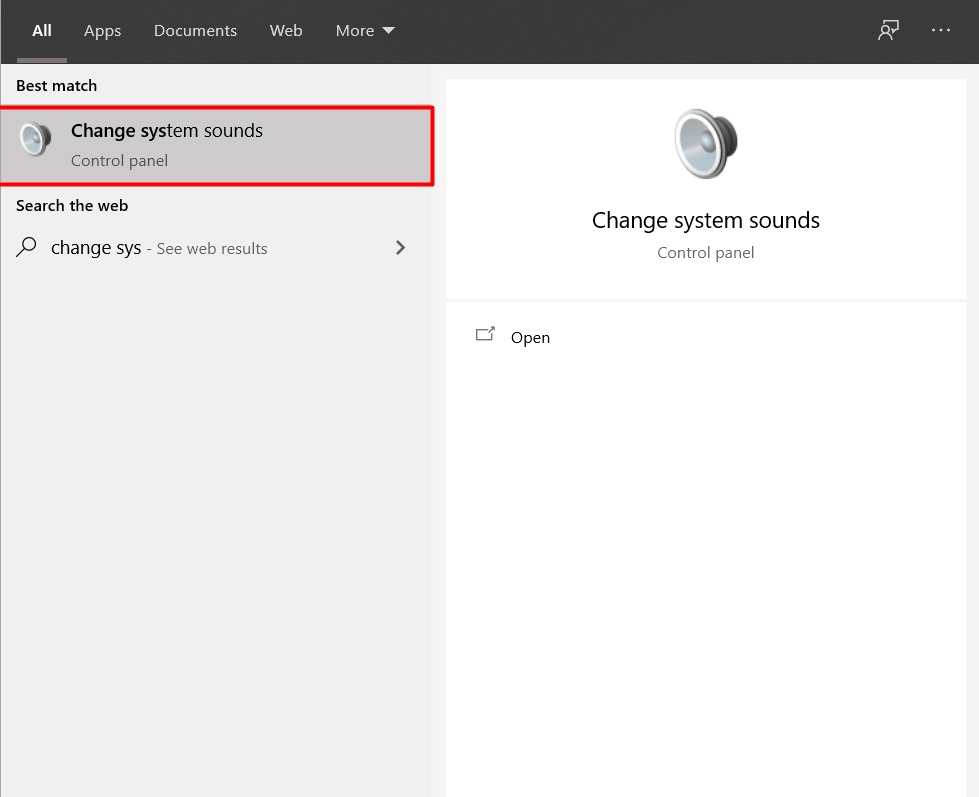 - Press the Windows key and type change sound settings and select it.