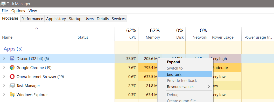 - Open the Task Manager and close all Discord running processes through the Task Manager.