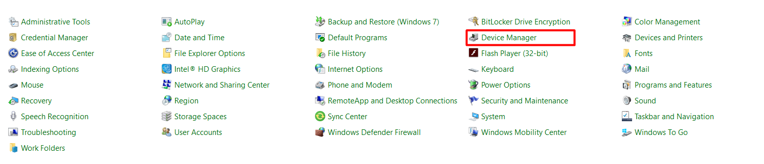 - Open the Device Manager in the Control Panel -> all control panel items -> Device Manager or press Ctrl+R and type “devmgmt.msc” in the dialog box and hit enter.